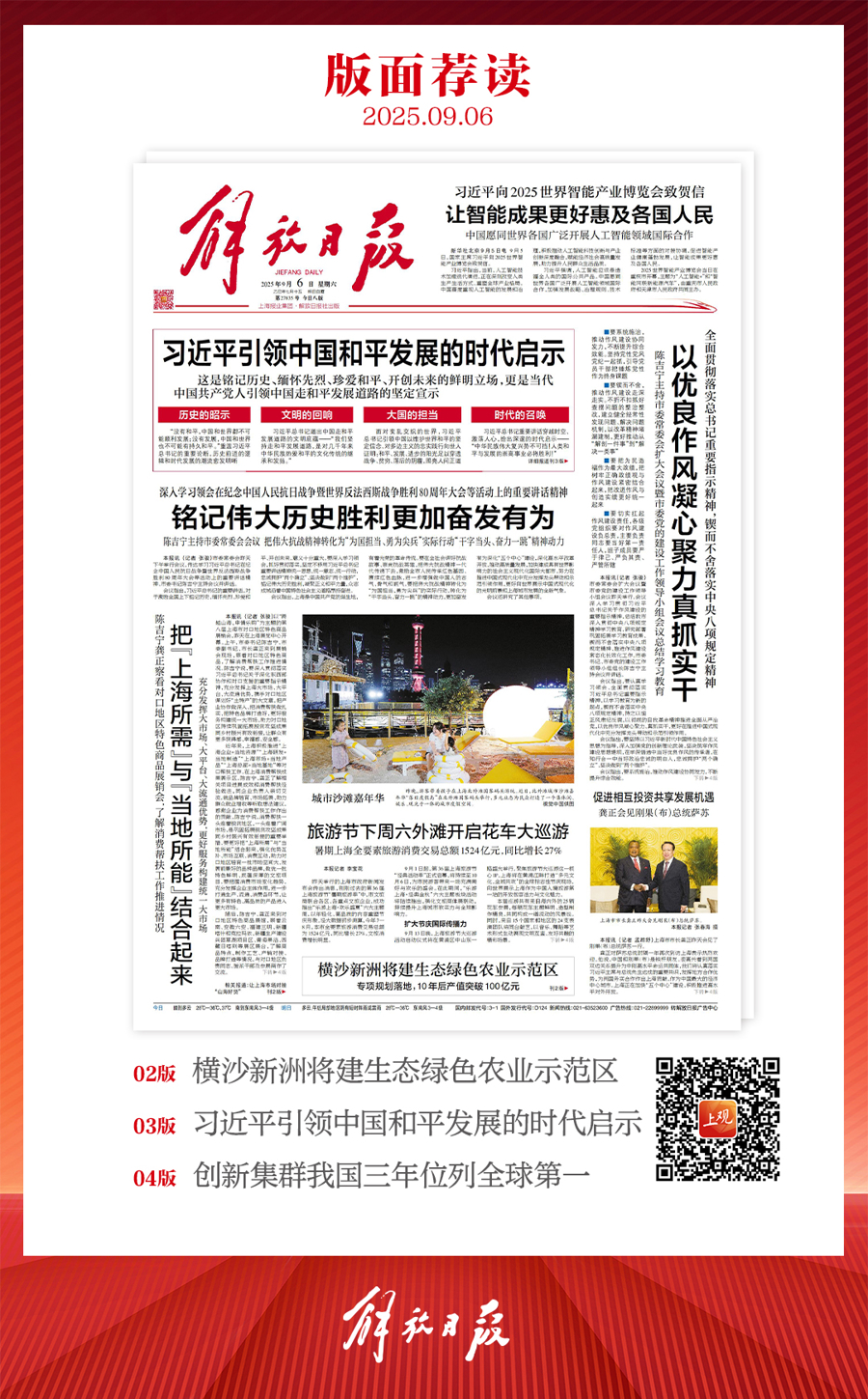 早上好!上观新闻『早读』来啦!2025年9月6日 星期六 农历七月十五上海晴到多云,28℃~37℃