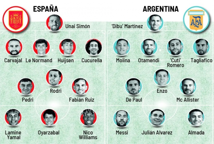 直播吧10月13日讯 根据《马卡报》报道,西班牙队vs阿根廷队的欧美杯可能明年3月在多哈进行,《马卡报》随后撰文对比了两队首发情况。